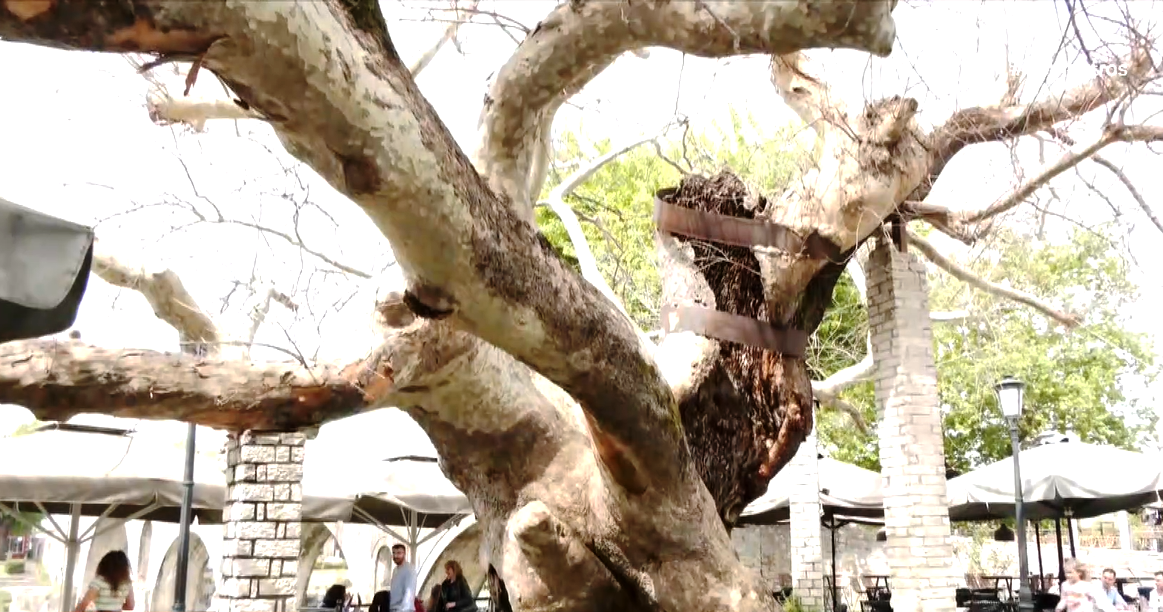 Ο λόγος για τον υπεραιωνόβιο πλάτανο, δίπλα από το ιστορικό Γεφύρι της Άρτας, όπου η δημοσιογράφος της ΕΡΤ Αλεξάνδρα Αγγέλη, παρουσιάζει τα προβλήματα που αντιμετωπίζει το δένδρο.